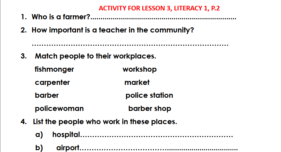 ACTIVITY FOR LESSON 3 LITERACY 1 PRIMARY 2