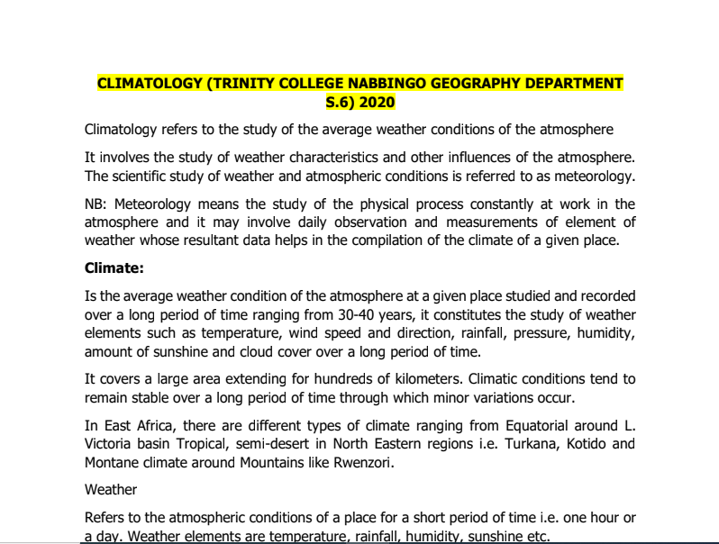 CLIMATOLOGY (TRINITY COLLEGE NABBINGO GEOGRAPHY DEPARTMENT S.6) 2020