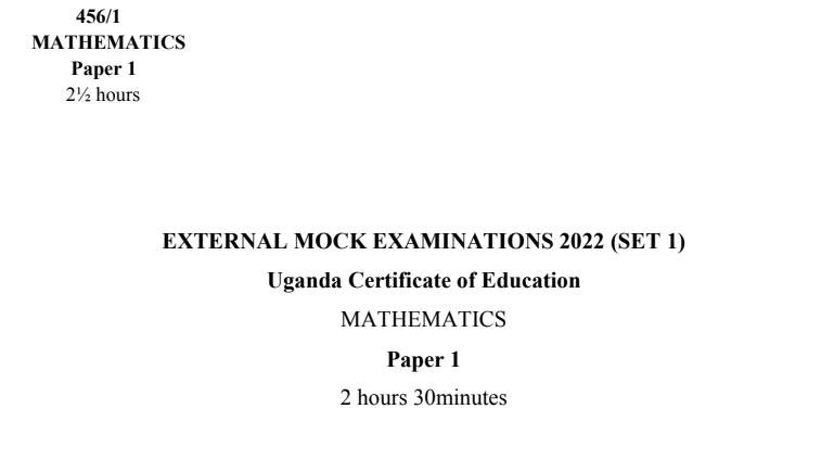 EXTERNAL MOCK EXAMINATIONS BUREAU UCE MATHEMATICS SET 1 PAPER 1 2022
