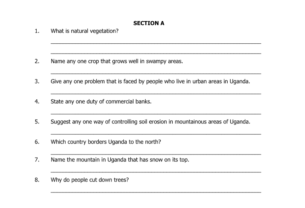 KAMPALA JUNIOR ACADEMY HOLIDAY WORK SET TWO TERM I 2020 PRIMARY FIVE SOCIAL STUDIES AND RELIGIOUS EDUCATION