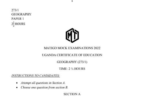 MATIGO MOCK EXAMINATIONS 2022 UCE GEOGRAPHY PAPER 1