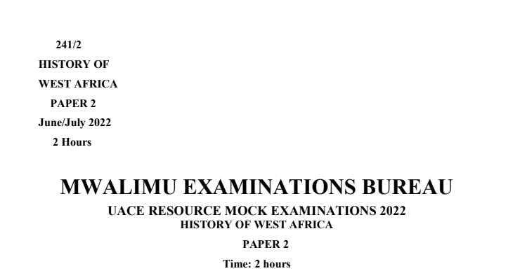 MWALIMU EXAMINATIONS BUREAU RESOURCE UACE HISTORY MOCKS PAPER 2 2022