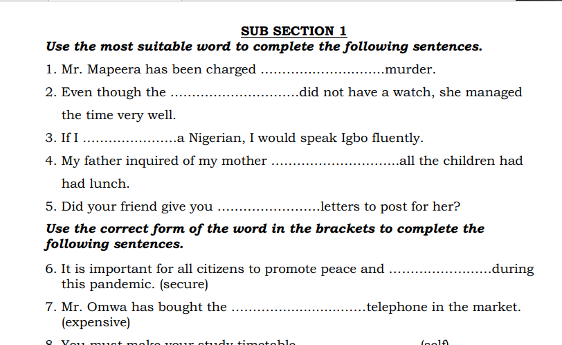 NAMAGUNGA PRIMARY BOARDING SCHOOL P.6 EXTRA EXAMINATION SET II – 2020 ENGLISH PRIMARY SIX