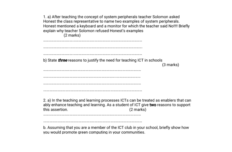 Nsambya Hillside High School ICT Paper 1 S.6 Internal Mock Examinations