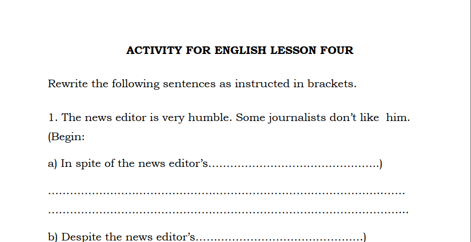 P.6 ACTIVITY FOR ENGLISH LESSON FOUR