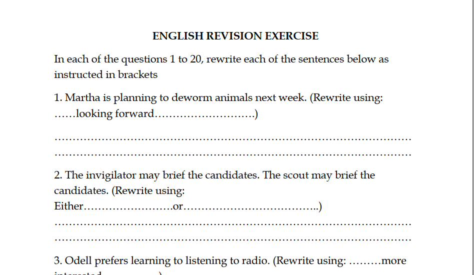 P.6 ENGLISH REVISION EXERCISE