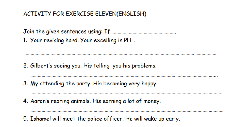 P.7 ENGLISH ACTIVITY FOR EXERCISE ELEVEN