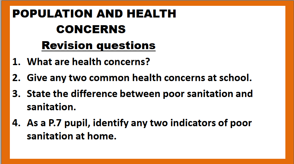 P.7 SOCIAL STUDIES REVISION ACTIVITY POPULATION AND HEALTH CONCERNS