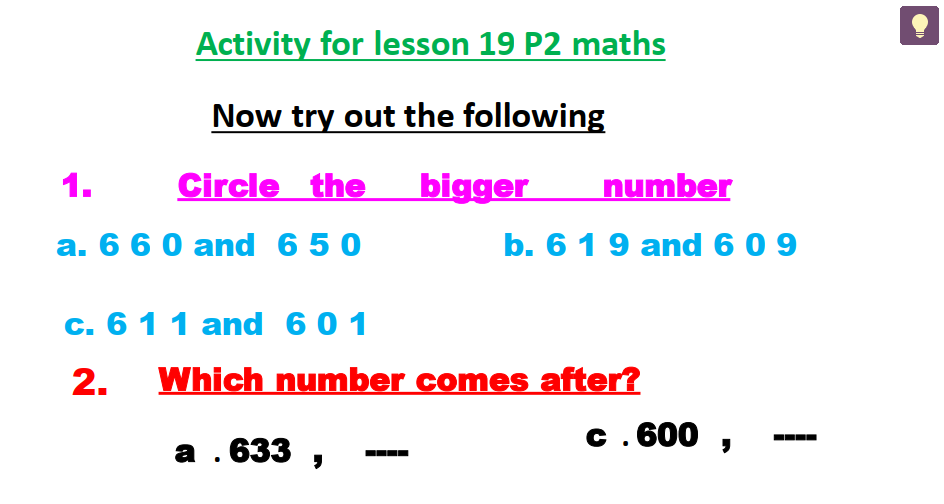PRIMARY 2 MATHEMATICS ACTIVITY FOR LESSON 19
