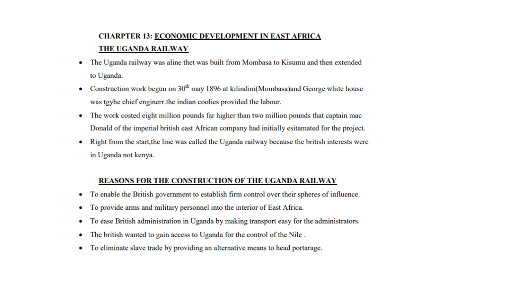 S.4 HISTORY ECONOMIC DEVELOPMENT IN EAST AFRICA THE UGANDA RAILWAY NOTES