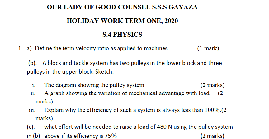S.4 PHYSICS HOLIDAY WORK TERM 1 2020