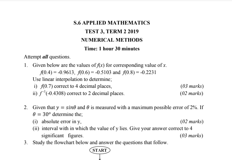 S.6 Mathematics Numerical Methods Test