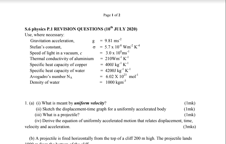 S.6 PHYSICS PAPER 1 REVISION QUESTIONS
