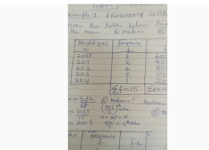 Mathematics Lesson 2 Finding Mean, Median, Mode using a frequency distribution Method