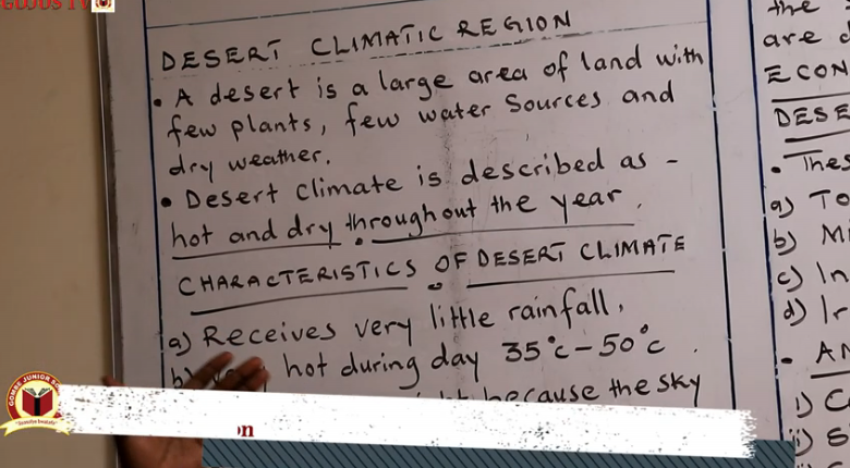 [VIDEO] SOCIAL STUDIES LESSON, DESERT CLIMATIC REGIONS, GOMBE JUNIOR SCHOOL E-LEARNING UGANDA